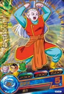 H7-41キビト神 レアリティ★★ HP:2300パワー:2100ガード:1500 衝撃波 必要エナジー:5 アビリティ:念力 ラウンド終了時、仲間がきぜつしていると、敵チームのヒーローエナジーを−2。[毎回] アルティメットユニット:気力回復率アップユニット 自分チーム全員のサポーターにした時の気力回復量が通常の2倍になる。[永続] 消費エナジー:3