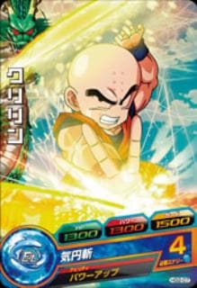 HG2-07クリリン HP:1300パワー:1300ガード:1500 気円斬 必要エナジー:4 アビリティ:パワーアップ 2ラウンド目でパワー+500。