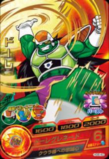 HG6-40 ドーレ HP:1600パワー:1800ガード:2000 超パワーブレイク 必殺技発動時、敵にあたえるダメージをアップできる。超バーストすると、攻撃した敵のパワーを−1000。[毎回] ドーレグレネード 必要エナジー:6 アビリティ:クウラ様への忠誠心 バトル開始時、自分チームに「クウラ」か「メタルクウラ」がいると、パワーとガードが2倍になる。 アルティメットユニット:精鋭パワーユニット ユニットメンバーのパワー+3000。[永続] 消費エナジー:3