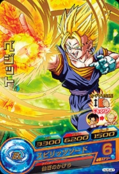 HJ5-47ベジット HP:3300パワー:4200ガード:1500 超サイヤ人 2ラウンド目以降アタッカーにすると、カードアクションが発生する。成功すると、変身し、パワー+2000。[1回限り] スピリッツソード 必要エナジー:6 アビリティ:仙豆のかけら 作戦決定前に自分の気力がピンチになっていると、自分の気力を全回復し、自分チームのHPを1000回復する。[1回限り]