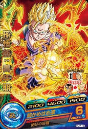 HJ7-19孫悟飯:青年期 HP:2100パワー:1600ガード:1500 超サイヤ人2 2ラウンド目以降アタッカーにすると、カードアクションが発生する。成功すると、変身し、パワー+3000。[1回限り] 超かめはめ波 必要エナジー:6 アビリティ:絶好の好機 戦闘力バトル時、毎回ガードが100未満の仲間のパワーとガードを+5000し、チャージインパクトスピードを遅する。[1ラウンド限り]