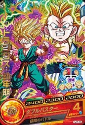 HJ7-25トランクス:幼年期 HP:2400パワー:2300ガード:2000 フュージョン 2ラウンド目以降パートナーと合体可能。合体後、毎ラウンド自分の戦闘力2倍&気力回復。さらに、敵に与えるダメージ2.5倍&気力ダメージ超アップ。 ダブルバスター 必要エナジー:4 アビリティ:極限のバトル ラウンド開始時、自分チームのHPが50%以下になっていると、敵に与えるダメージが1.2倍になる。[永続]