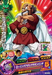 HGD2-58ミスター・サタン:GT レアリティ★ HP:1000パワー:2000ガード:1000 ガードカプセル 2ラウンド目以降の作戦決定時、自分チームか敵チームの作戦エリアにカプセルを投げることができる。[1回限り] 【自分チーム効果】仲間のガードが永続で1500アップ。 【敵チーム効果】敵のガードが永続で1500ダウン。 ローリングアタックサタンパンチ 必要エナジー5 アビリティ:強運の持ち主 ミラクルパーフェクトの発生確率がアップする。[永続] アルティメットユニット:連携封印ユニット 敵チームのれんけいアタックをふうじる。[1ラウンド限り] 消費エナジー:3