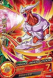 HGD6-26ジャネンバ HP:2800パワー:3600ガード:2000 羅刹爪 必要エナジー:7 アビリティ:無慈悲な攻撃 30%以上のダメージ軽減効果を発動している敵を攻撃した時、与えるダメージが5倍になる。[毎回]