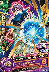 HGD6-39トランクス:GT HP:1900パワー:3500ガード:1000 超パワーブレイク 必殺技発動時、敵に与えるダメージをアップできる。超バーストすると、攻撃した敵のパワーを−1000。[毎回] バスターキャノン 必要エナジー:6 アビリティ:うえつけられた忠誠心 自分チームの「スーパーベビー」「スーパーベビー2」の、敵に与えるダメージが1.3倍になる。